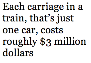The State of Georgia further hinders MARTA with a 50/50 split per the outdated and archaic MARTA Act of 1965. In other words: although MARTA is essentially its own government, they cannot spend the revenue how they see fit. Fifty percent of the revenue produced must go toward capital improvements, and the other 50 percent is to go toward operations. This is why MARTA has such long headways, but wonderful infrastructure. If Keith Parker were to want this changed, he’d have to appeal to the State Legislature for a limited time amendment, which is what we have now. MARTA train service has improved and headways are shorter, but only because Keith Parker requested, and received a limited time revision to the 50/50 revenue split. And let me tell ya—those trains ain’t cheap.